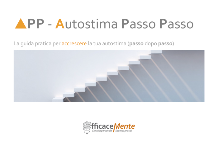 Il mio nome è Andrea Giuliodori, sono l’autore di EfficaceMente.com ed Autostima Passo Passo (APP) è la mia nuova guida dedicata a chi desidera tornare a credere in sé stesso e nelle proprie potenzialità.